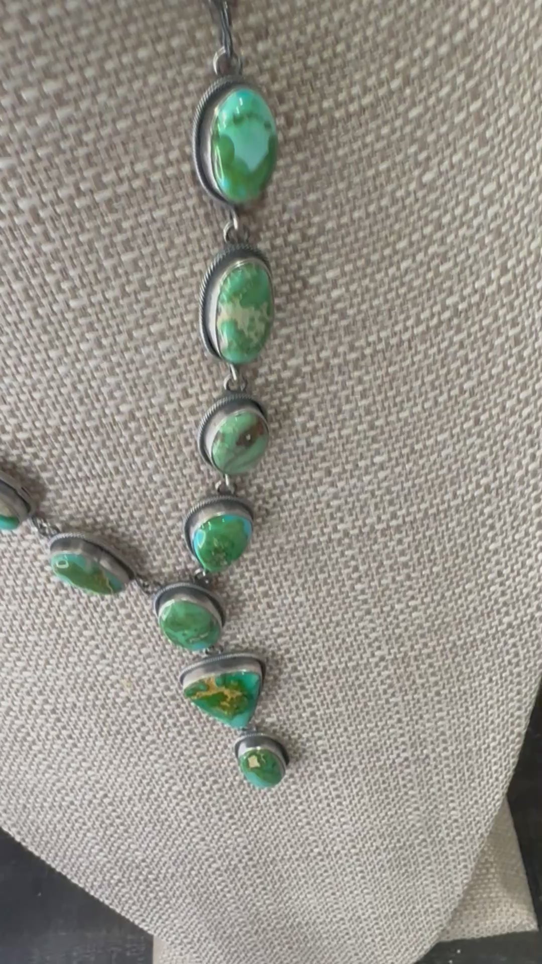 Sterling silver Sonoran Gold lariat by renowned artisan Eli Skeets. This striking piece features warm, natural Sonoran Gold stone set in polished sterling silver with an elegant lariat design. The necklace measures 22 inches in total length, with the pendant dropping 13 inches from top to bottom, creating a dramatic, elongated silhouette. The lariat style allows for adjustable wear and versatile styling. A sophisticated addition to any collection, showcasing masterful silverwork and the distinctive beauty of Sonoran Gold.